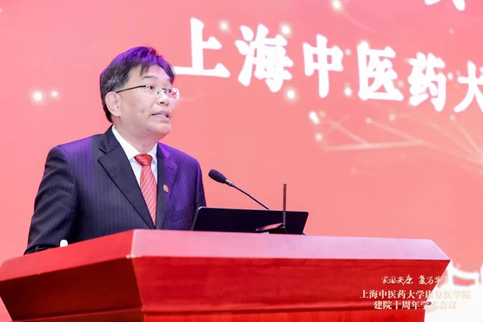 12月23日上午,上海中医药大学康复医学院建院十周年学术大会在图书馆裙楼四楼报告厅举行。中国康复医学会党委书记牛恩喜,中国工程院院士顾玉东,我校党委书记曹锡康、校长徐建光,上海市卫生健康委员会副主任、上海市中医药管理局副局长胡鸿毅,上海市康复医学会常务副会长郑洁皎,上海交通大学医学院党委副书记施建蓉,我校副校长王拥军,学校二级学院、职能部门、附属医院领导,企业界代表,师生代表共同参加会议。