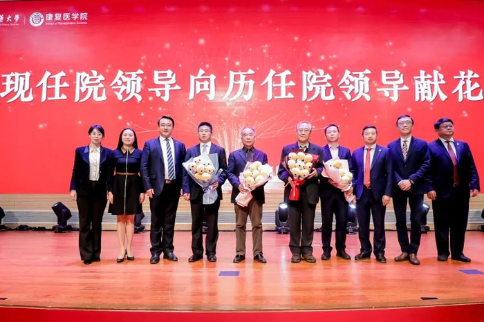 曹锡康、郑洁皎、顾玉东、牛恩喜先后致辞,祝贺康复医学院建院十周年,希望康复医学院在今后的征程中创造更加辉煌的成绩,对照国际康复医学教育标准,将现代康复医学与中医传统康复医学相结合,探索建设中国特色康复医学教育体系,培养具有“国际标准、中国风格、中医特色”的卓越康复人才。
