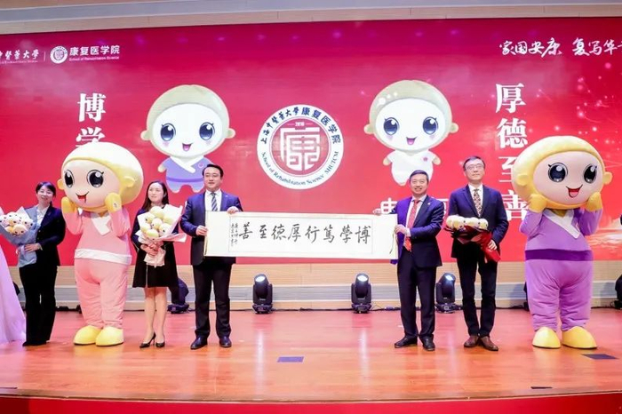 康复医学院党总支书记向延卫、院长单春雷共同发布了康复医学院院训“博学笃行 厚德至善”。院训是康复医学院办学理念、治院精神的高度概括,呼应了学院的育人使命,表达了学院的价值追求,是全体康复师生的精神守则。大会发布了康复医学院新版院徽,新版院徽在原院徽的基础上,增加了中英文院名和学院创建时间,“康”“中”“申”紧密融合,展示了学院的建院定位与办学特色。会上还发布了以上海中医药大学吉祥物“申小杏”为原型设计的康复医学院吉祥物“申小康”和“申小复”。