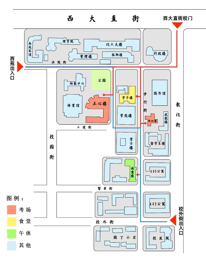 (2)西苑入口:正心楼4-6层考场考生