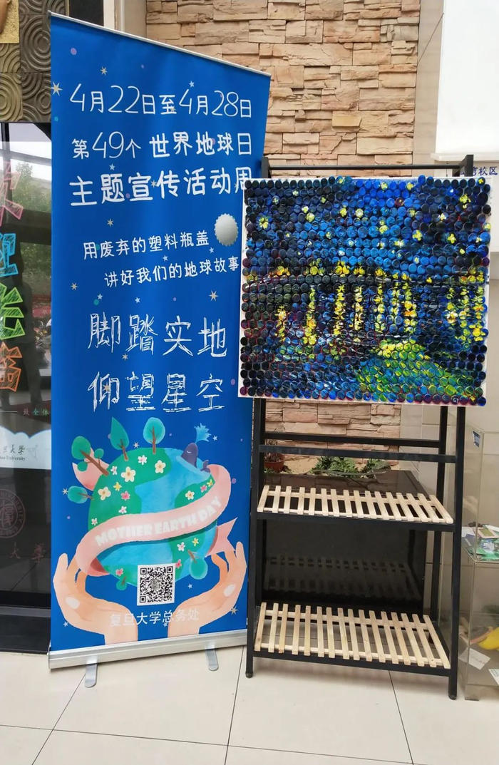 用会场回收的水瓶和食堂的剩菜头,打造生机盎然的食堂绿植角落;用演出活动收集到的1200个废弃塑料瓶盖“绘制”了梵高的名作《星月夜》和《罗纳河上的星夜》。连续开展“卿云森林”建设活动,针对学生个人低碳行为探索建立绿色低碳积分机制,让绿色低碳的观念变成一种可以量化的指标。以“垃圾分类新时尚,绿色生活我先行”为主题,帮助学生普及垃圾分类知识,鼓励学生进行生活垃圾源头分类,培养健康积极的生活方式。