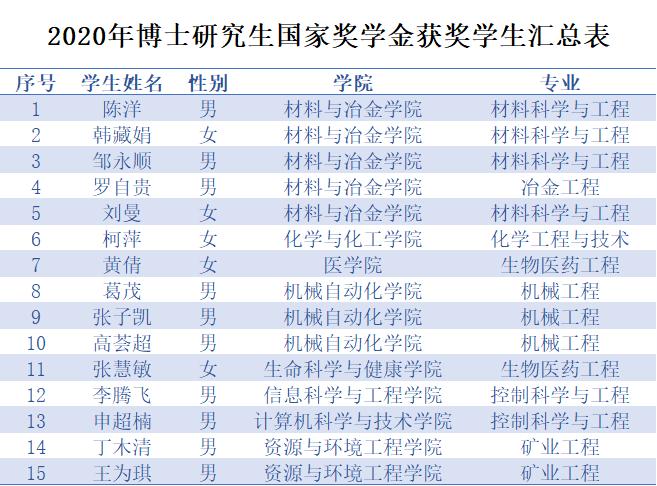 来源:武汉科技大学博士研究生国家奖学金获奖名单