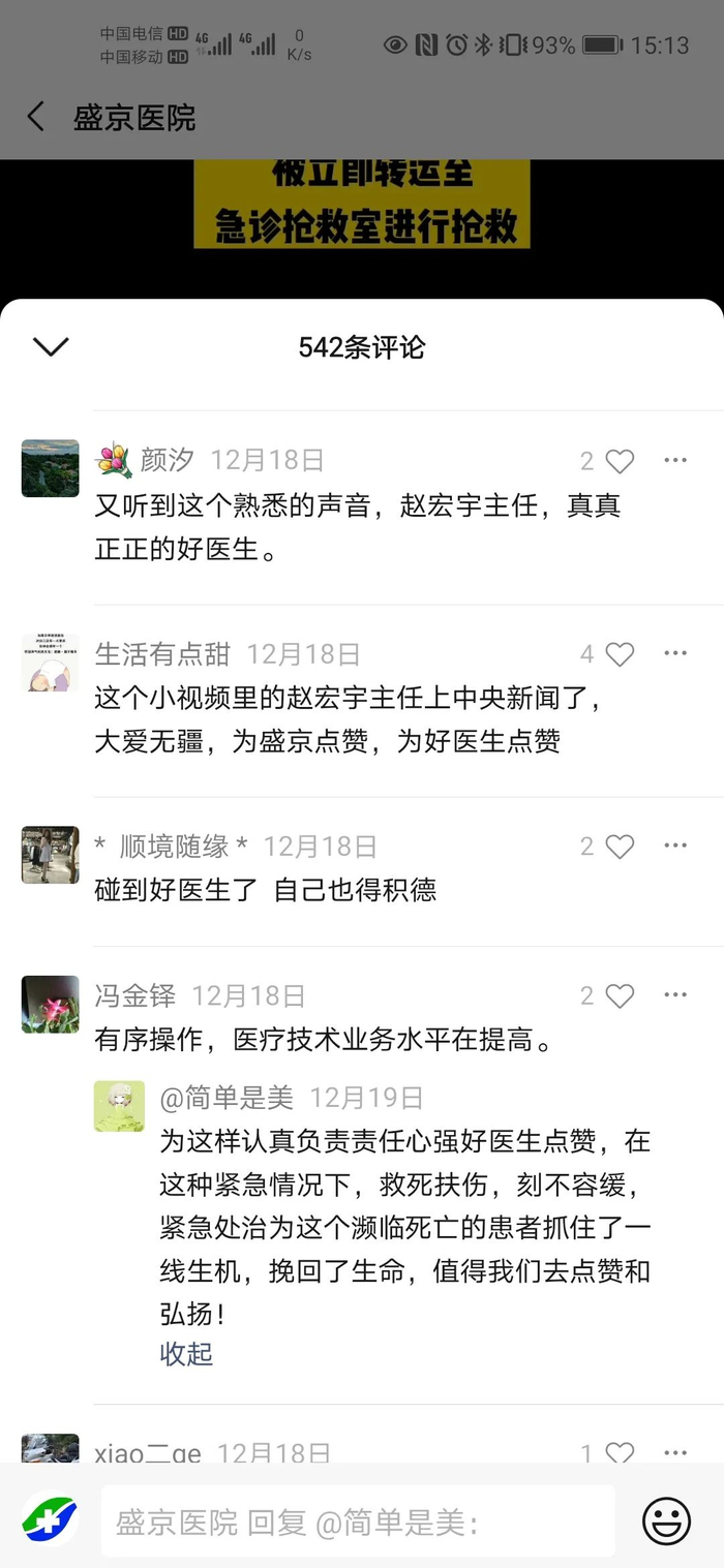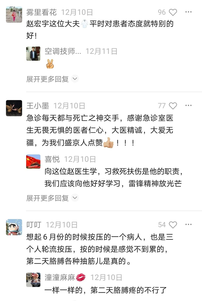 急诊科医生赵宏宇接到消息后顾不上穿外套,第一时间火速奔赴现场,并带领医护人员对患者进行了标准、及时、不间断的抢救,成功挽救了患者生命!