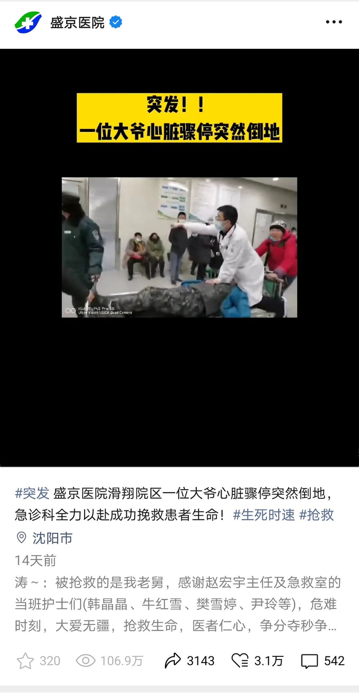 中国医科大学附属盛京医院这位医生被央视点名表扬!网友点赞:你与死神赛跑的样子太帅!