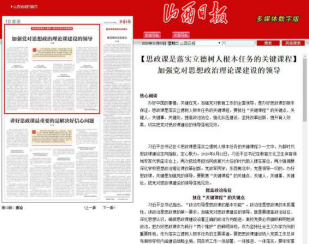 11月3日《山西日报》刊发了王仰麟书记署名文章《加强党对思想政治理论课建设的领导》。文章指出,加强党对教育工作的全面领导,是办好思政课的根本保证。思政课是落实立德树人根本任务的关键课程,要抓住“关键课程”的关键点、关键人、关键事、关键处,提高政治站位、强化队伍建设、坚持改革创新、提升育人效果,切实把党对思政课建设的领导落地见效。3月23日《山西日报》刊发黄桂田校长署名文章《深入实施“1331”工程 服务山西高质量转型发展》。文章指出,我省高校应当不断增强“服务山西,不需要理由”的行动自觉,大力实施“1331”工程,聚焦内涵建设,对接主导产业,强化办学合作,全面提升办学质量,努力为山西高质量转型发展提供强有力的人才保障。