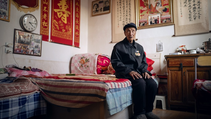 邂逅肖江河,是在武乡县砖壁村的一条坡道上。他扛着一把锄,拄着一根拐,走得缓慢却笔挺。毕竟91岁了,耳朵听不真切,他的眼睛却明亮,讲起当年故事,像闪着光。