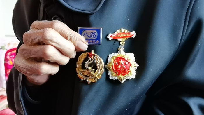 话音落下,他颤颤巍巍站起身来,拉开老榆木抽屉,取出三枚徽章,其中一枚显然被反复擦拭过,那是“中国人民抗日战争胜利70周年”纪念章。其实肖江河成年后做了老师,退休前是当地联合学校的校长。可朱德钦点儿童团团长的经历影响了他的一生。早年被划归右派,回乡改造期间,他依然搞剧团、写诗著文,回忆八路军;退休后,他编写了《砖壁村志》《武乡琴书一一八路军总部在砖壁》等书册。