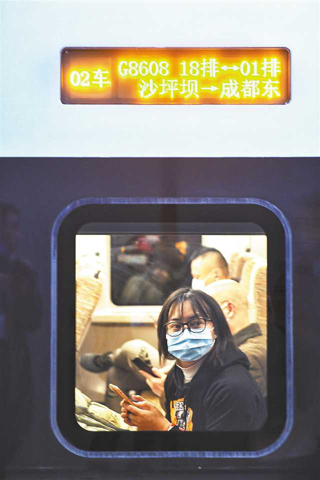 12月24日,重庆沙坪坝站,一名旅客带着复兴号模型搭乘刚开通的复兴号前往成都。首席记者 崔力 摄/视觉重庆