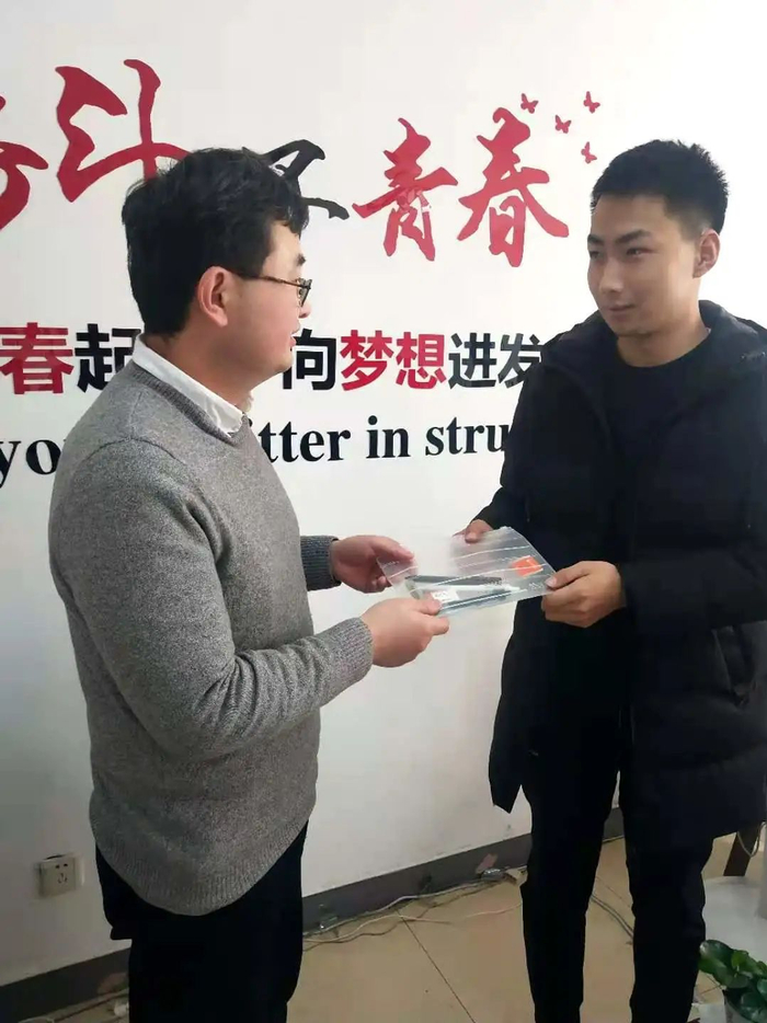 12月21日下午,海院教育学院党委副书记、副院长于景宝,副院长章韵、辅导员钱龙老师在教一502教室慰问2021届考研同学。院领导们把精心准备的考试文具袋、加油“橙”、零食包亲自送到考生手上,厚嘱托,长期盼,预祝考生取得满意成绩!