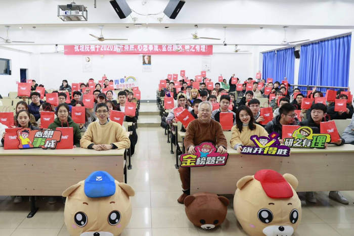 12月22日,理学院举办了“‘研’之有‘理’,不负韶华”考研加油会!学院党委书记尹志丽提出本次活动的创意,院长唐加山,党委副书记、副院长汪颖,副院长刘胜利乔装成卡通玩偶出现在教室里,和同学们互动减压,活动现场同学们反响热烈,教室里充满欢声笑语。祝愿我们的考研学子旗开得胜,心想事成,金榜题名!