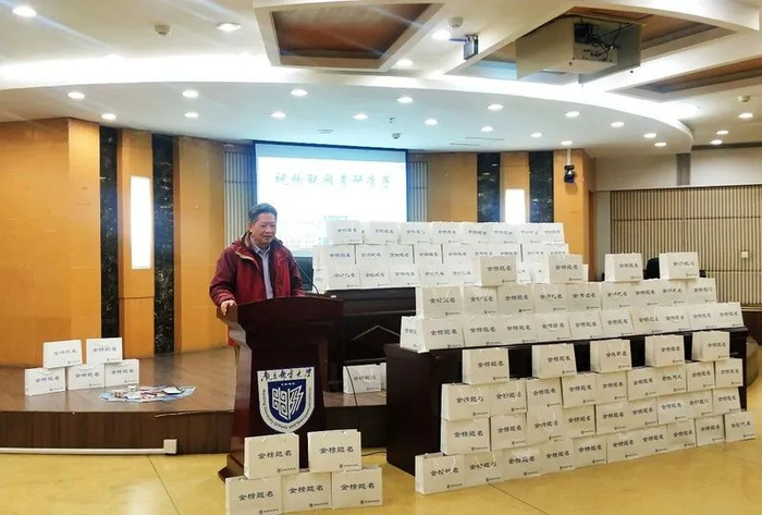 12月16日,物联网学院在三牌楼校区科学会堂一楼报告厅隆重举行励志而温馨的考研学子考前慰问活动。院长张登银、副院长陆音、院党委副书记徐磊和2017级辅导员李萌老师参加活动,一同为2017级全体考研学子送上考研加油礼包,慰问同学们的考研学习生活,勉励同学们持之以恒,嘱咐同学们注意身体健康。