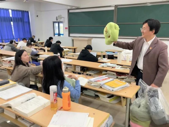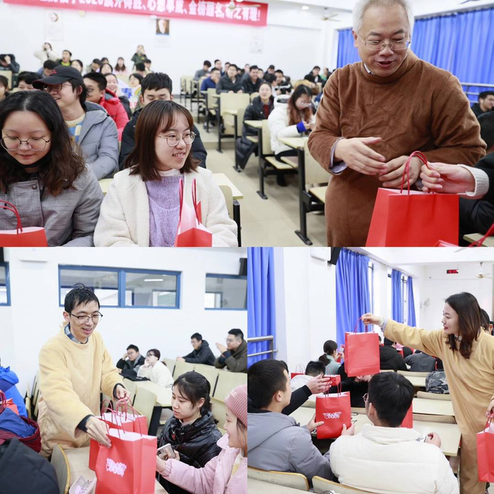 12月16日,考研倒计时10天,在这个特别的日子,社会与人口学院考研学子齐聚教3-511,接收每个人“专属”的祝福大礼。学院党委书记张强、副书记兼副院长尹秀娟、副院长刘晓峰、年级辅导员王振宁等老师出席考前加油会,为考研学子打气助力。他们分发了精心准备的加油大礼包,面对如此温暖的惊喜,everybody says 'I do'!
