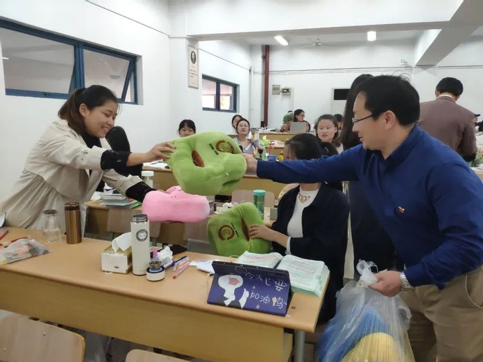 12月16日下午,外国语学院召开“一战成硕”考研冲刺动员大会。院党委书记陈晓波、院长袁周敏、党委副书记徐欣娅、2017级辅导员高艳丽老师到场一起为考研柚子们发放了精心准备的专属考研盲盒礼包及定制可乐,为备战考研的柚子们加油鼓劲。