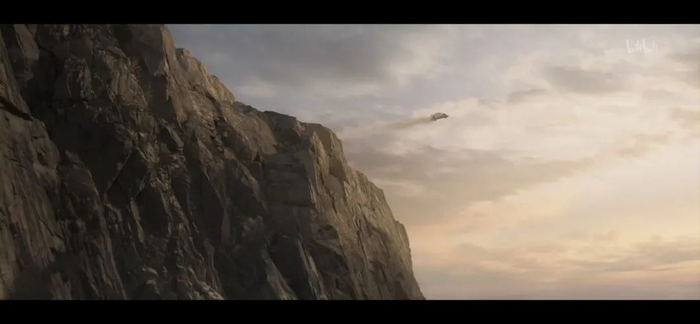 它全速冲出护栏,冲过荒凉的戈壁,朝着太阳的方向飞出悬崖,而断崖之下则是无垠的沧海。影片也定格在这一隽永的画面。