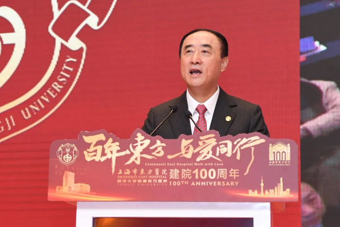 上海交通大学附属瑞金医院院长宁光院士代表兄弟医院致辞。他表示,东方医院的发展有独到之处,不少地方值得兄弟医院学习。希望东方医院在新的百年里早日建成国内一流的综合性、研究型的医院,为上海创建一流医学中心城市和有影响力的全球科创中心贡献自身力量。