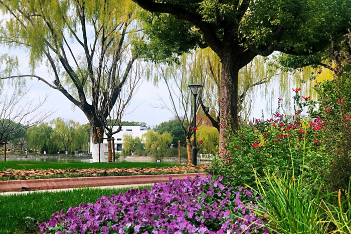 本次设计采用双侧花境的形式,不论是从湖畔景观小道上,还是从教学楼上,都能欣赏到美丽的花卉搭配。