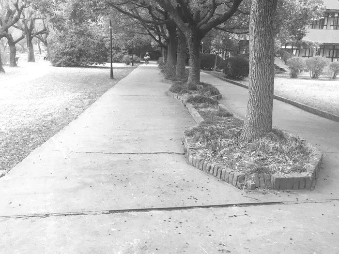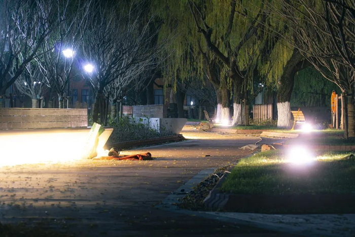 随着时间的推移,茂盛的香樟冠盖如云,却也影响了草坪和低矮灌木的生长。而草皮退化后又导致了黄土裸露雨季积水,隆起的树根破土而出也使混凝土的路面破裂突起。此外湖边的硬质驳岸和景观照明的不足,在夜间也带来一些安全隐患。