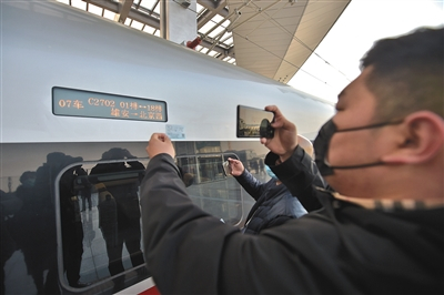 前来打卡首发列车的还有不少是参与了雄安站建设的工作者。“真的特别激动,开票后抢了好几个小时票才候补到一张二等座车票。”中建八局一公司的李世坤是雄安新区的一名建设者,公司负责雄安站配套管廊项目的建设,这一项目是雄安站重要的配套基础设施。李世坤说,他作为建设者也见证了雄安站的建成,也希望以后雄安能发展得越来越好。