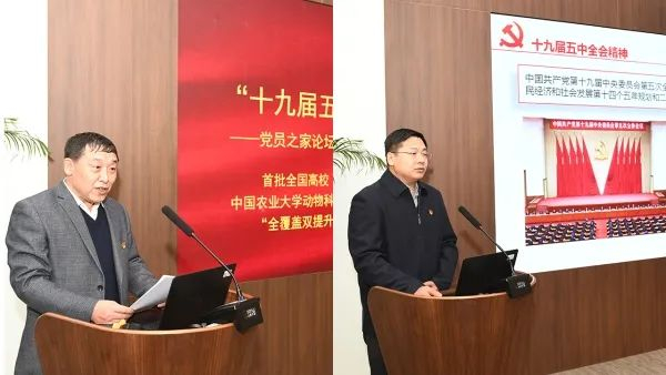 在动物科学技术学院,郑富芝参加了“全覆盖 双提升”师生共建党支部的“‘十九届五中全会精神’学思会”主题党日活动,分别听取动物遗传育种与繁殖教职工党支部书记连正兴关于支部年度工作情况汇报,党支部副书记刘国世关于“十九届五中全会精神”学习思考主题报告。党支部的师生党员代表从发挥科技创新在人才培养中的作用、决战脱贫攻坚与全面推进乡村振兴、培养知农爱农新型人才等方面展开研讨。