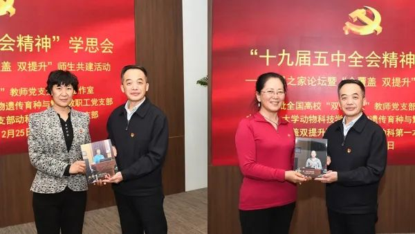 郑富芝在讲话中高度肯定了动物遗传育种与繁殖教职工党支部的党建工作。他指出,基层党支部的建设工作是学校党建工作中最基本的细胞,发挥着重要作用,要提高工作的实效性,具体要从两个方面下功夫:一是要在深度结合上下功夫。要将党建工作与学科建设和人才培养深度融合,通过“结合”引领方向,让师生全面了解国家的“三农”政策,真正地亲农、爱农、服务于“三农”。二是要在提高针对性上下功夫。要了解师生的所思所想,通过党建工作释疑解惑,让教师能够把握时代脉络去教书育人,使学生将个人理想追求融入党和国家的事业中,更好地实现人生价值。希望动物遗传育种与繁殖教职工党支部夯实工作基础,打造特色活动,把首批全国高校“双带头人”教师党支部书记工作室的牌子擦的更亮,奋力谱写基层党建工作新篇章。
