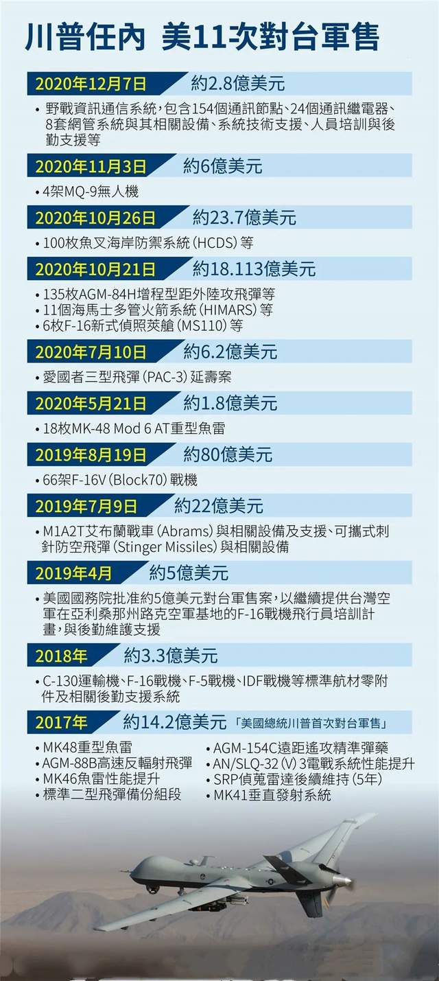 针对美对台军售,在台湾绿媒三立新闻的脸书评论区和台湾的公共论坛,台湾网友直言:“没人想要花大钱买美国不要的烂货”“淘汰武器进再多也没啥用,而且比新式武器贵,还沾沾自喜,哎”“特朗普就是要拜登在他设计好的印太框架下执政”。