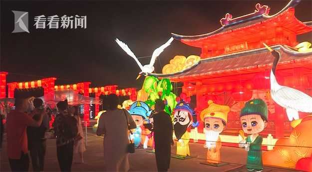 通过对豫园九曲桥、湖心亭等标志性场景的呈现,游客们仿佛置身于上海豫园,他们在璀璨夺目的灯体前,合影留念。