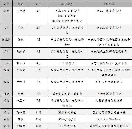 除了上文提到的山东、吉林、湖南、福建外,湖北、黑龙江、江西、四川也先后迎来了“空降”地方的省级常委。