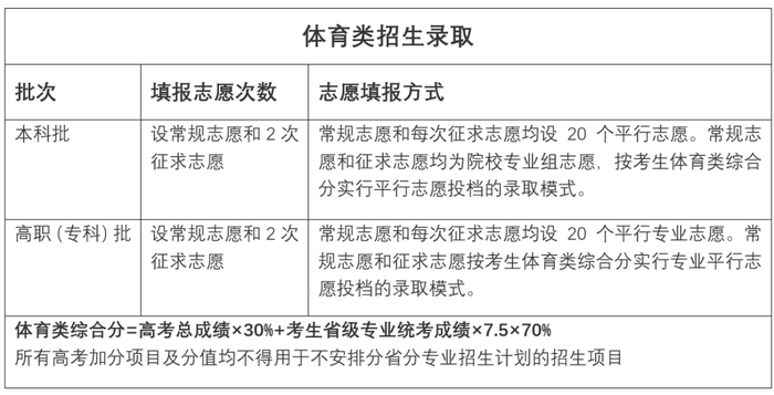 分为本科批和高职(专科)批2个批次。按照普通类本科、专科录取控制线和体育类专业统考满分成绩的适当比例划定体育类本科、专科文化考试成绩录取控制线和专业录取控制线。