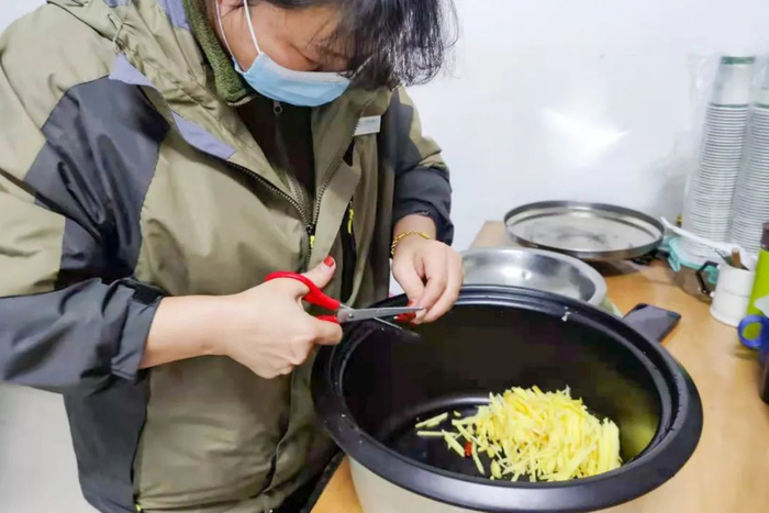 宿管阿姨在提前准备食材