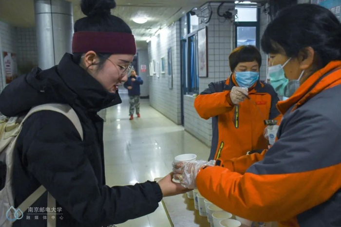 天才蒙蒙亮仙林校区的学生宿舍门口早已热闹起来早起的鸟儿有虫吃,早起的柚子有茶喝~宿管阿姨忙里忙外正给每个要出门上课的小柚子递上一杯暖心茶三牌楼校区