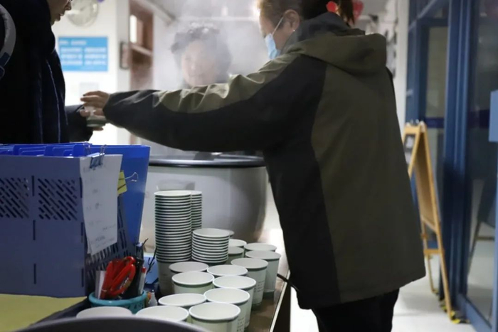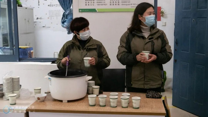 为在校师生准备了热气腾腾的红糖姜茶
