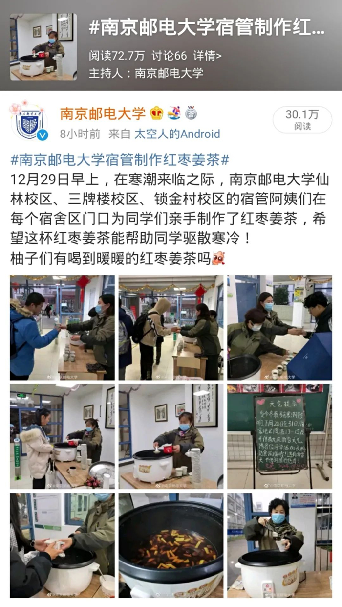 原标题:寒潮来袭,南邮温暖“姜”你环绕!