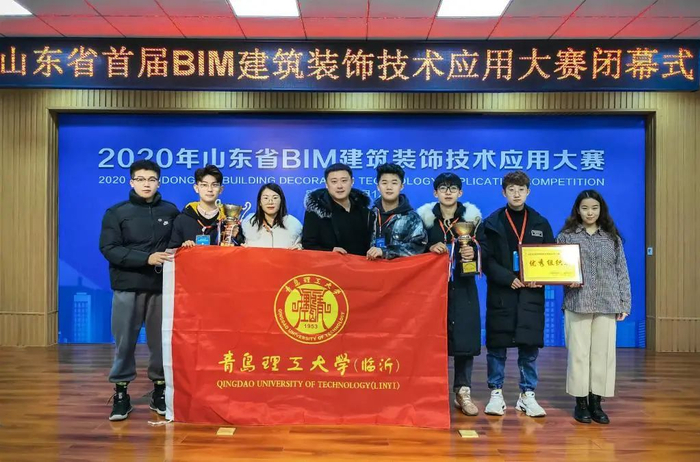 本次比赛由山东省建设科技与教育协会、山东省勘探设计协会主办,大赛从BIM建模、设计及VR表现、装饰工程成本管控、装饰工程施工图深化设计4个方面进行,通过比赛全面考察学生的专业知识、BIM技术、VR技术应用能力、团队组织、协作能力和学生的三维认知、设计创新能力,有助于提升对装饰工程项目全过程的学习效果。经过激烈角逐,由王轲、张利华指导的第一代表队(队员:赵志毅、陈学森、胡梦雪)获得大赛团体一等奖,由李云、江一指导的第二代表队(队员:程兴琥、牟浩洋、郭令旗)获得大赛团体二等奖,校区获得优秀组织奖。