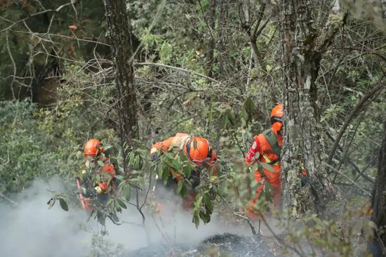 云南省森林消防总队先后投入迪庆大队、丽江支队、大理支队共364名指战员进行扑救,齐兴彬总队长率前指一线指挥。丽江市森林消防支队159名指战员正全力扑打火场西北线,大理州森林消防支队138名指战员正全力阻截东北、北线明火,迪庆州森林消防大队60名指战员跟进处理北线和东线零散火点。