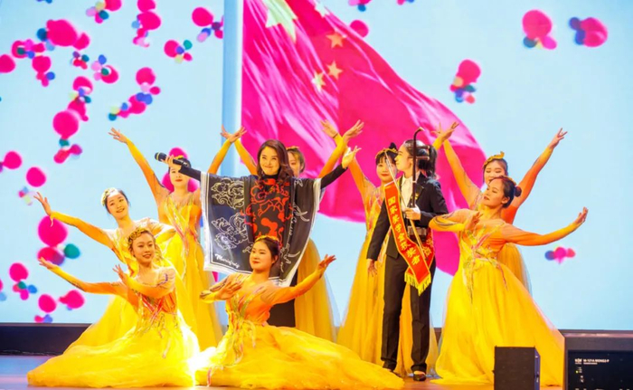 靳薇弘同学还与导师邵萍一起亲情演绎了歌曲《我爱你中国》。