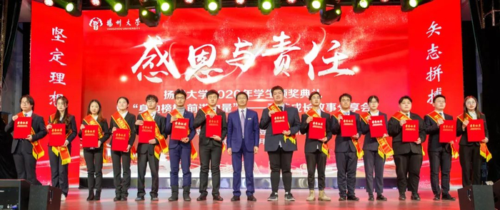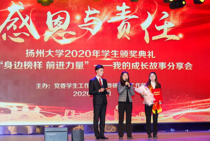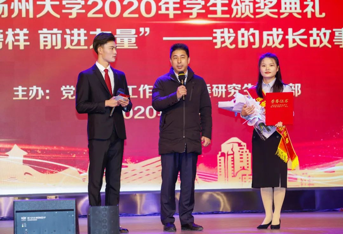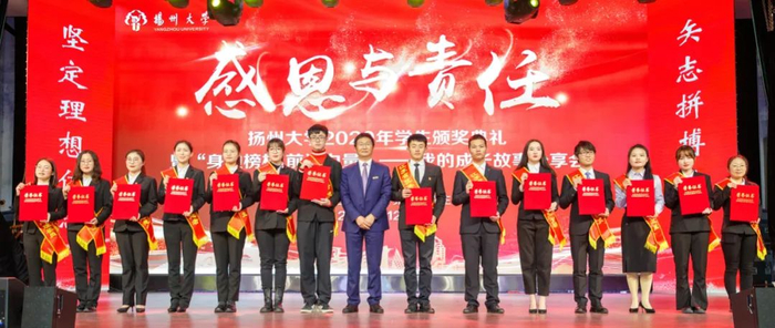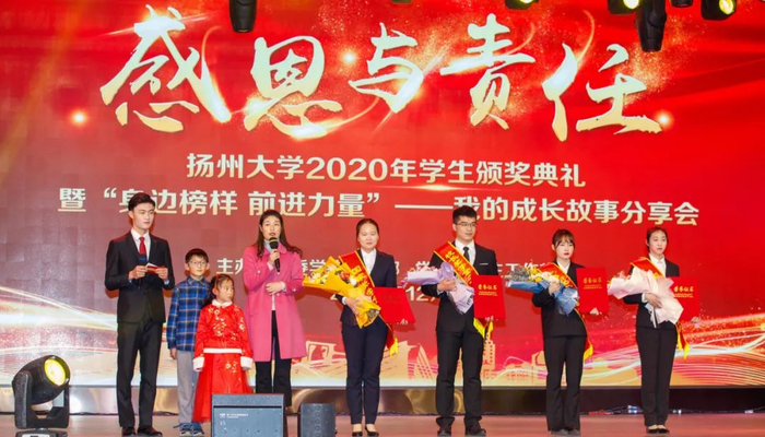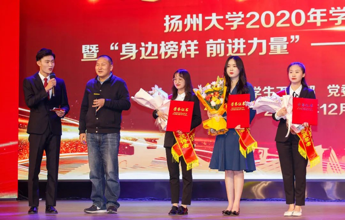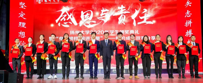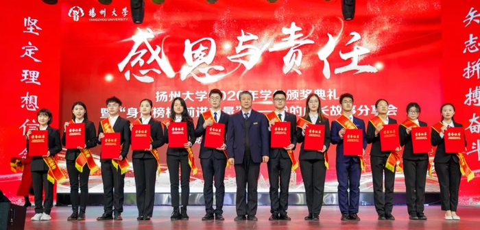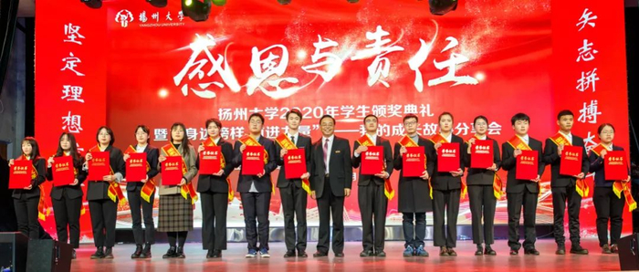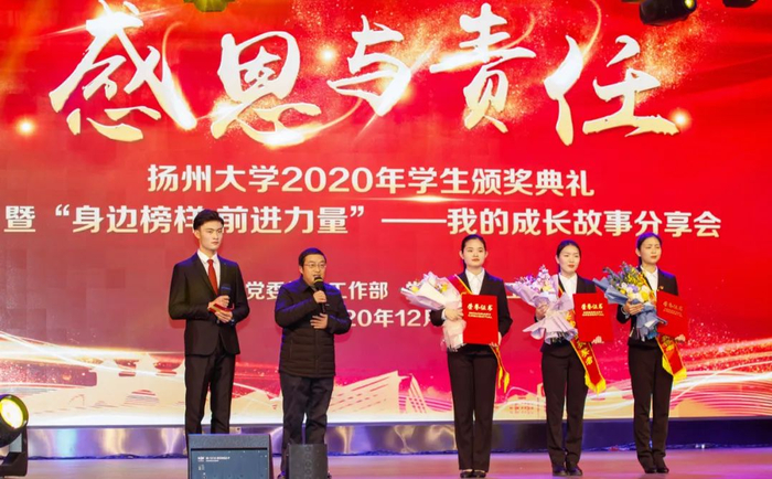 12月28日下午,学校在文汇路校区大礼堂隆重举行“感恩与责任”2020年学生颁奖典礼。校长焦新安,校党委副书记叶柏森,副校长陈国宏、俞洪亮,校党委常委、宣传部部长张信华分别为国家奖学金、校长特别奖学金、博士研究生学术新人奖、费孝通立德奖学金、校园先锋、国家励志奖学金以及省级以上专业竞赛和荣誉称号获奖代表颁奖。焦新安发表讲话。