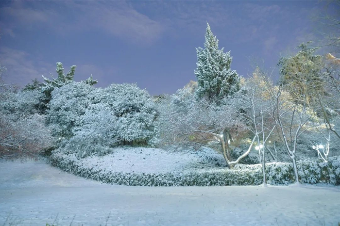 校园里的一切都伫立在雪中