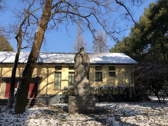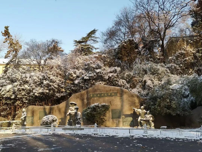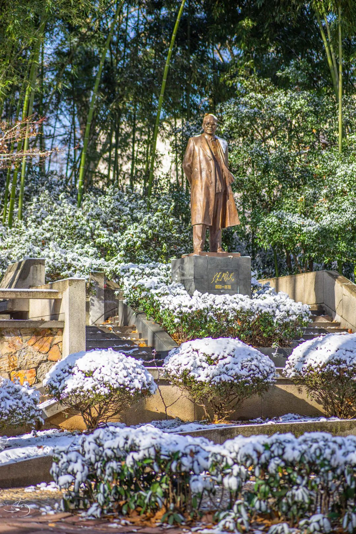 皑皑白雪,掩不住草木的青翠生机更掩不住先贤伫立的坚毅