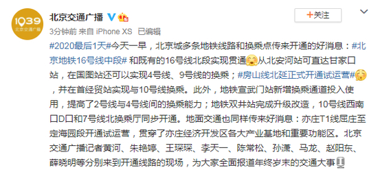 #2020最后1天#今天一早,北京城多条地铁线路和换乘点传来开通的好消息:#北京地铁16号线中段# 和既有的16号线北段实现贯通