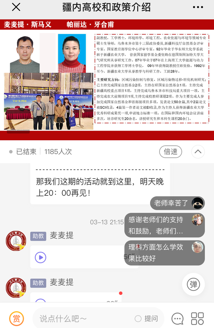 今年年初,麦麦提居家隔离期间关注到家乡的高中生对未来学业规划充满了迷茫和焦虑,于是他依托院系党支部,多次组织线上帮扶新疆高考生的活动,拓宽他们的信息渠道,勉励他们努力学习备战高考,帮扶的对象涵盖从北疆到南疆的上千位高考生。