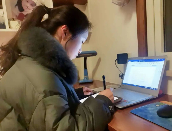 我坐在院子里上课,只为克服没有信号、网络不好的困难,我相信,网络那头的你们也和我一样努力着,我们肩并着肩一同向前。