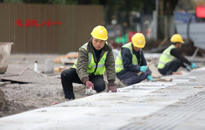 来源:重庆日报客户端1月1日早上7:20,中国十九冶集团有限公司九龙滩项目部铺装工曾永全,穿上黄绿色的反光背心,戴上黄色的安全帽,快步走向九龙滩广场,准备给九龙滩广场一侧的人行道铺花岗石地砖。