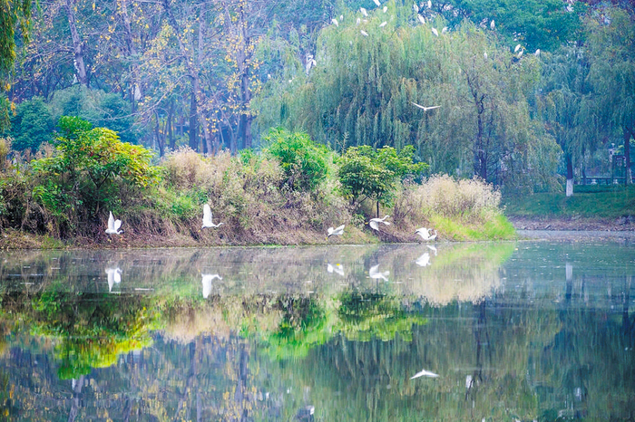白鹭从“稀客”到“常客”,背后是成都的治理愿景:呈现一个碧水长流、生机盎然的都市滨水公园。