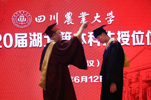 6月12日,在2020届毕业典礼上,学校授予商学院2007届毕业生刘仙(“雨衣妹妹”) “最美川农校友”荣誉称号。校党委书记庄天慧、校长吴德亲自为“雨衣妹妹”颁发证书及奖杯。疫情期间,“雨衣妹妹”逆行武汉送出2万份盒饭,生动彰显了青年担当,被授予全国抗击新冠肺炎疫情先进个人、全国优秀共产党员等荣誉。