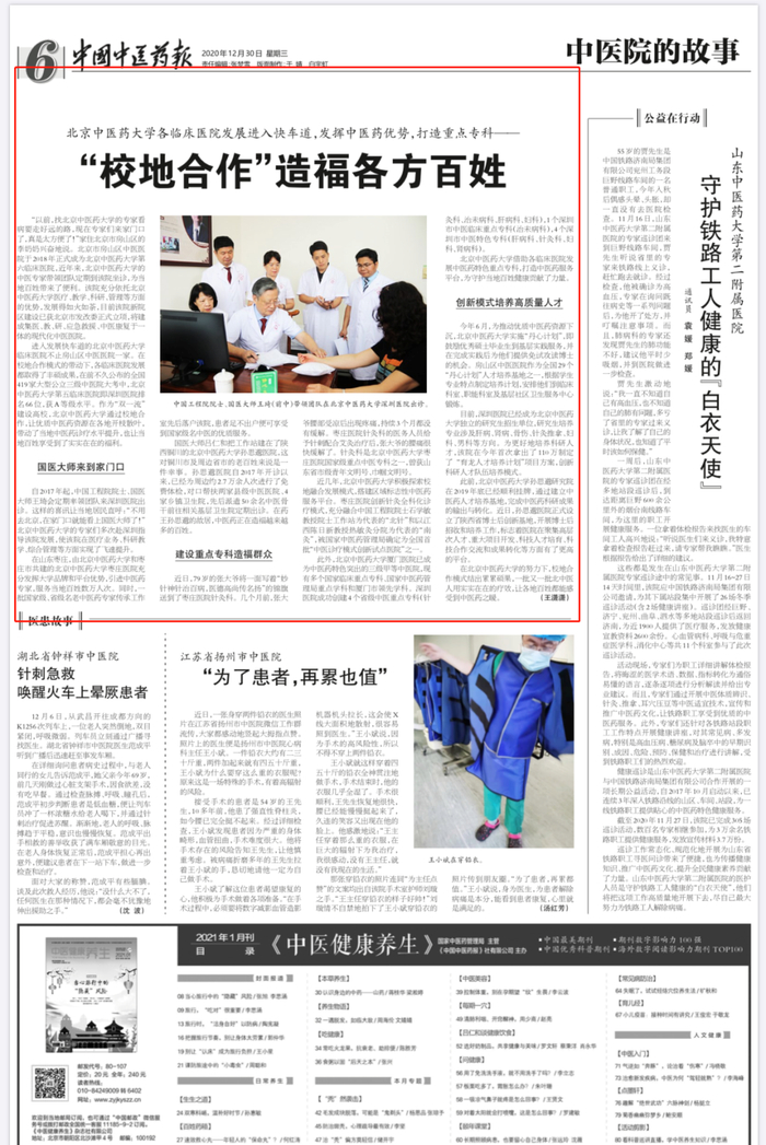 来源:北京中医药大学近日,《中国中医药报》报道我校扎根中国大地办医办学,“校地合作”造福各方百姓,全文如下: