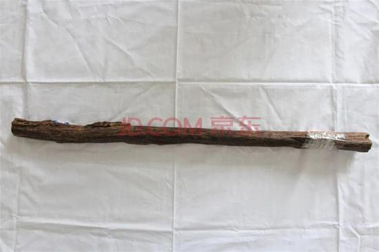沉香木的尺寸(cm):长:62,直径2.6~3,物品的重量为359.2(g)。