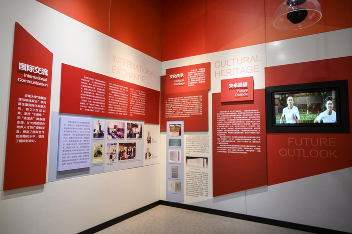 第五展厅讲述了云南大学建设成为双一流大学的过程,2017年,云南大学入选42所世界一流大学建设高校行列,2018年,教育部和云南省人民政府签署部省合建高校。“双一流”建设和部省合建,提高了学校的目标定位和发展站位,开创了学校发展新的历史阶段。
