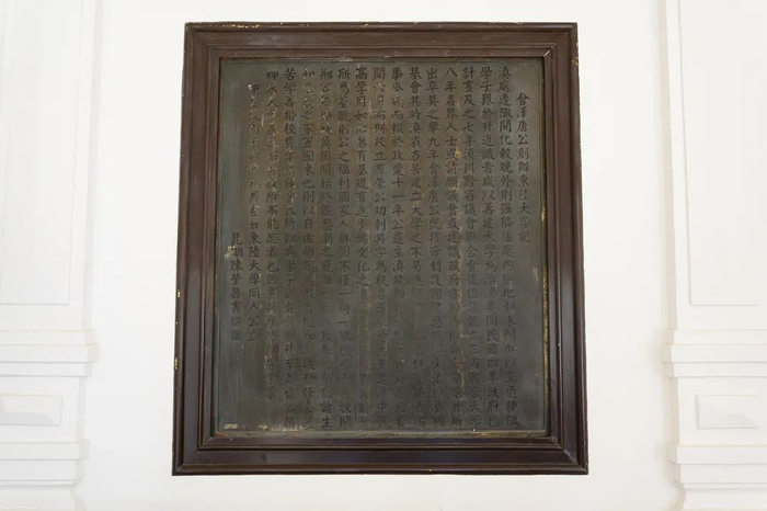 《会泽唐公创办大陆大学记》铜碑,现仍然镶在会泽院一楼大厅正中北墙上。1927年5月唐继尧病逝,为纪念大陆大学的这位创始人,学校邀请著名书法家、名噪一时的知名人士陈荣昌书写《会泽唐公创办东路大学记》。陈荣昌书写好后, 东陆大学的教职工共同出资按陈荣昌的字体把它铸在一块高约155厘米、宽约137厘米、厚约2厘米的黄铜板上,并于当年9约镶在会泽院一楼大厅正中北墙上。铜碑上镌写了创办东陆大学的经过,并着重强调唐继尧在创办过程中的功绩。