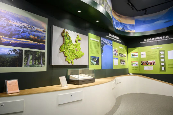 第九展厅讲述了高原山地生态与地球环境科学学科群的发展,云南大学瞄准世界科技前沿,围绕国家战略需求,汇融生物多样性与生态系统功能、生物演化与古生态,地球系统演化及资源环境效应、复合生态系统与受损环境修复、跨境水资源与生态安全等优势特色学科,构建起高原山地生态与地球环境学科群。