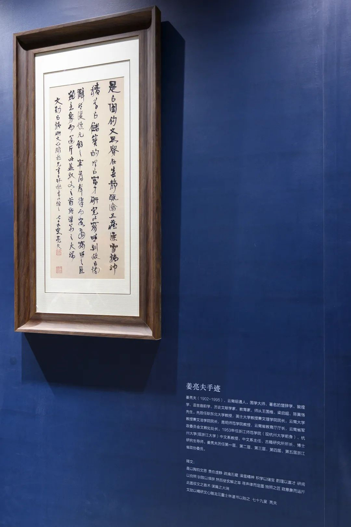 第十二展厅展示了张文勋先生与师友的信札,“做平常人,过平常的生活,保持平常的心态”,正是这种平和的人生真谛使张文勋先生得以潜心研究,驰骋文坛50多载,取得了令人瞩目的成就。同时,张文勋不忘将深奥的理论探索和具体的古典诗词赏析相结合,所著的《诗词审美》从心物感应、情志合一等22个方面探讨了诗词审美活动中的特殊现象,几乎涵盖了中国古代美学理论的主要命题。老骥不伏枥,志犹存千里,从教学第一线退下来的张文勋依然情注桑梓,带领年轻教师搞学术研究,指导研究生,孜孜不倦地追求着更深邃的学术境界。